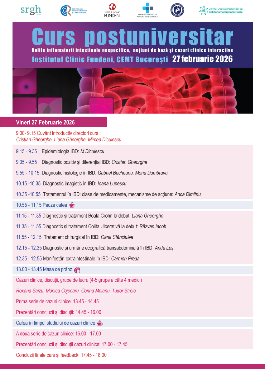 Înregistrarea se face la secretariatul Centrului de Gastroenterologie și Hepatologie ICF Contact: Elena Festeu, Tel: 0723982413